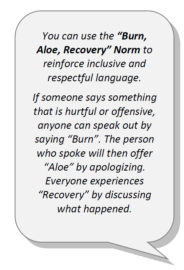 Tips for creating a safe space through respectful language: